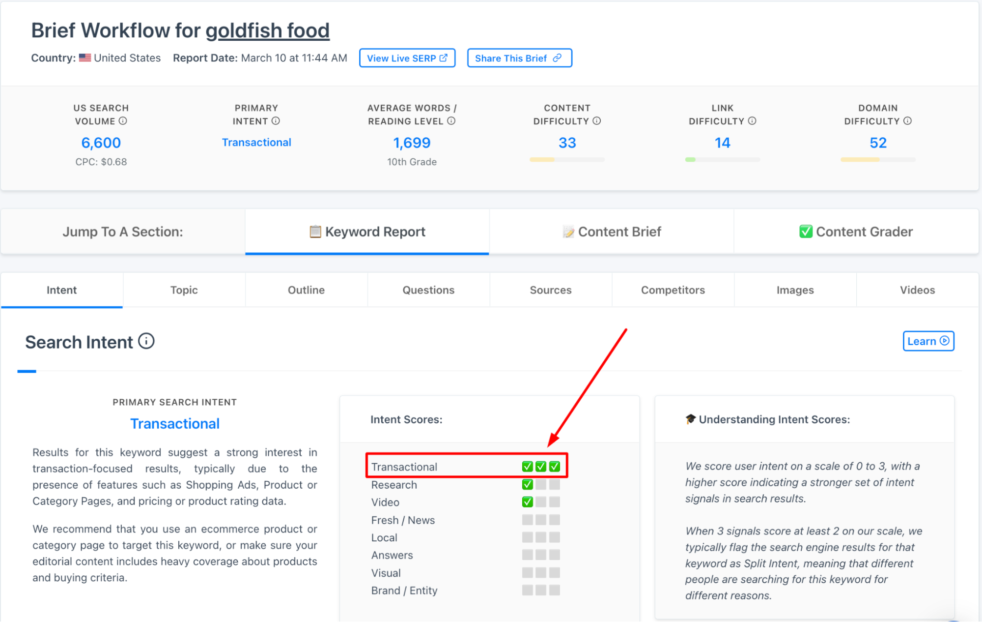 When folks search for โgoldfish foodโ, are they looking to buy food for their pet or learn more about the product? Unless you understand what folks want in a specific query, you run the risk of wasting time building out content that wonโt rank.