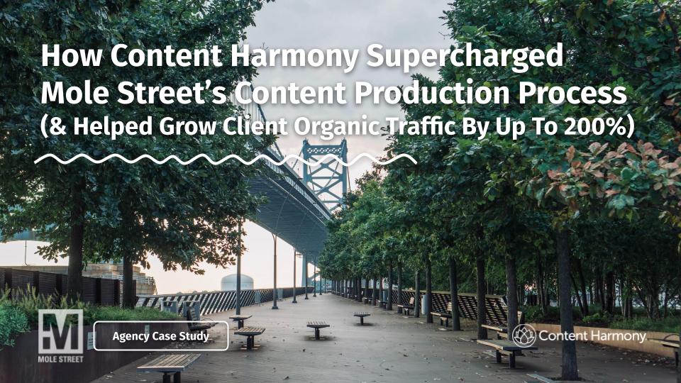 How Content Harmony Supercharged Mole Streetโs Content Production Process (& Helped Grow Client Organic Traffic By Up To 200%) Results Aug 30, 2021 • 3 min read
