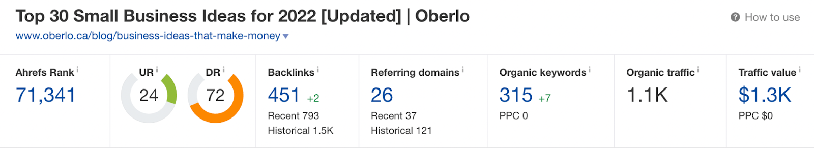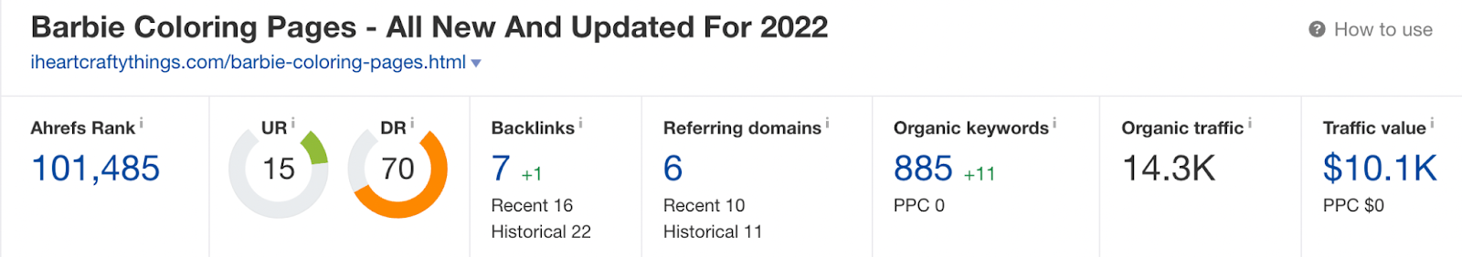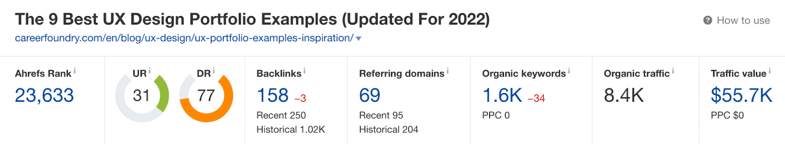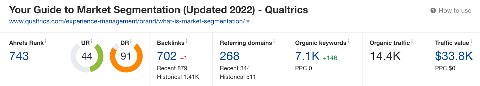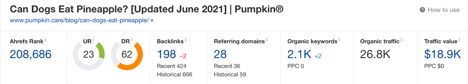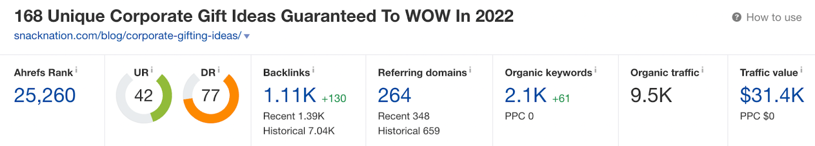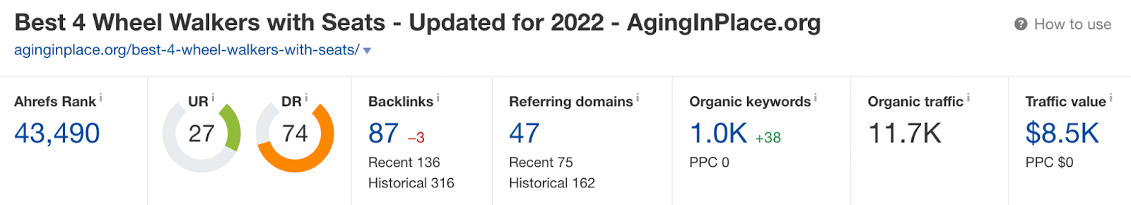 Current traffic estimates from Ahref suggest that the article receives approximately 550 monthly organic visitors, up nearly 300%.
