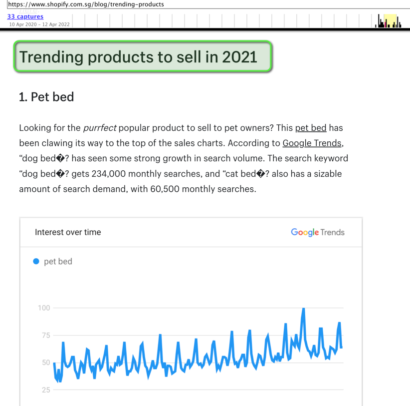 Let’s end our list with an analysis of the article “12 Trending Products to Sell in Singapore in 2021”, published on the Shopify Singapore blog in early 2020.