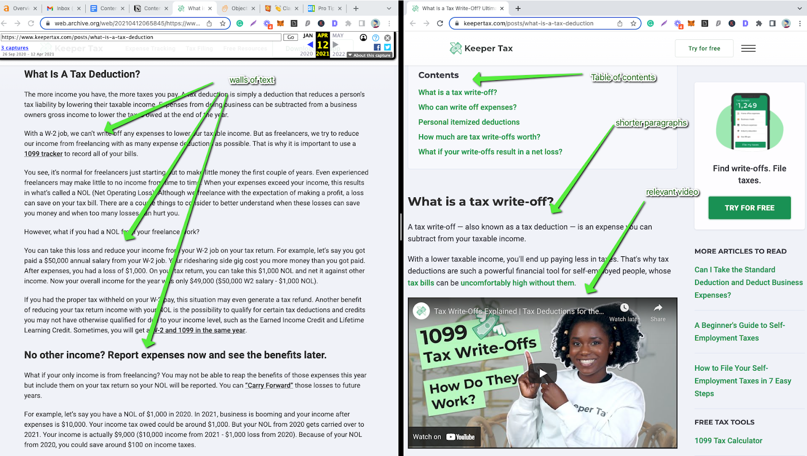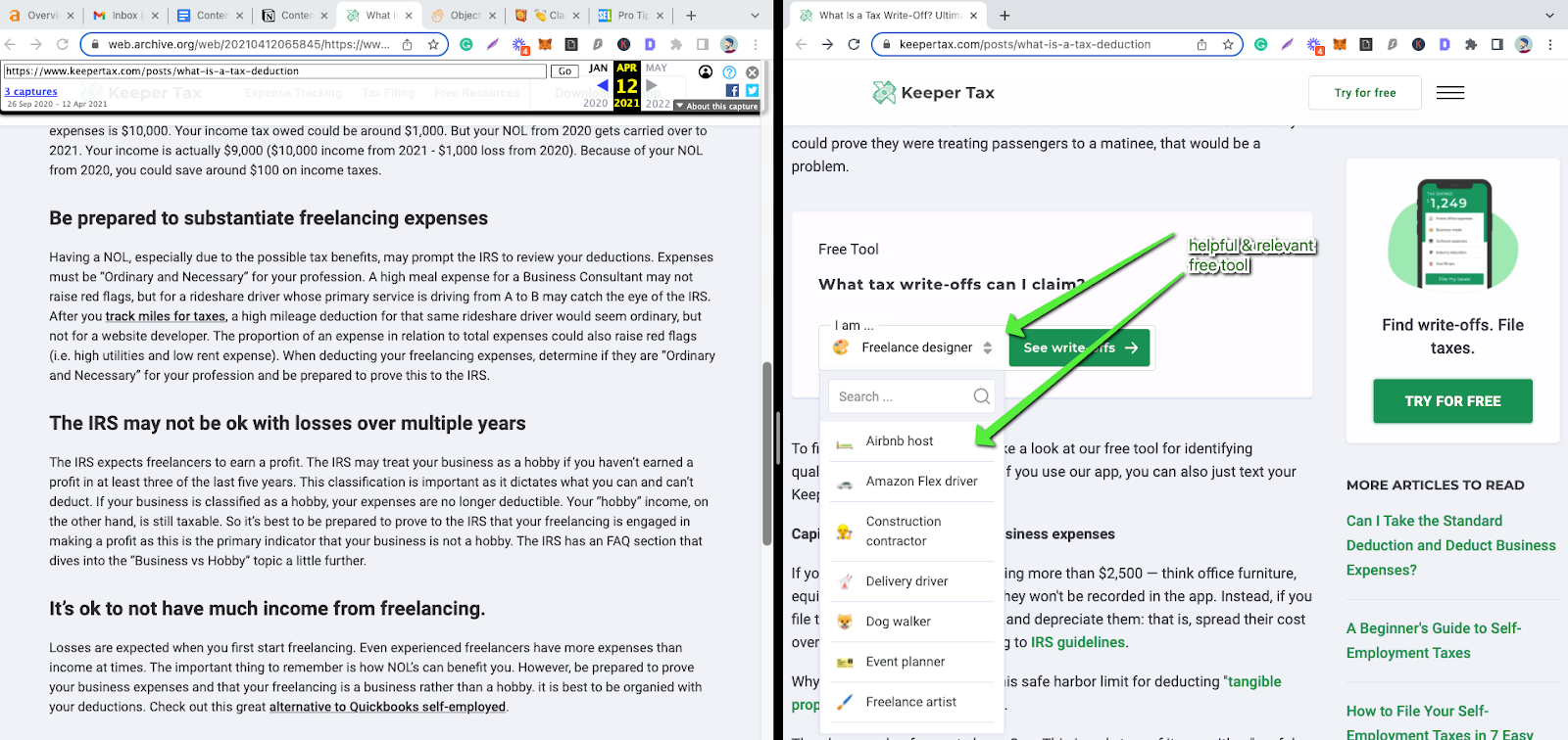 I also like the addition of the free tool: “What tax write-offs can I claim?”. It’s helpful and fitting and doesn’t come across as intrusive at all. In fact, I think it significantly improves the readability of the post.