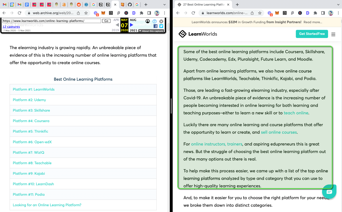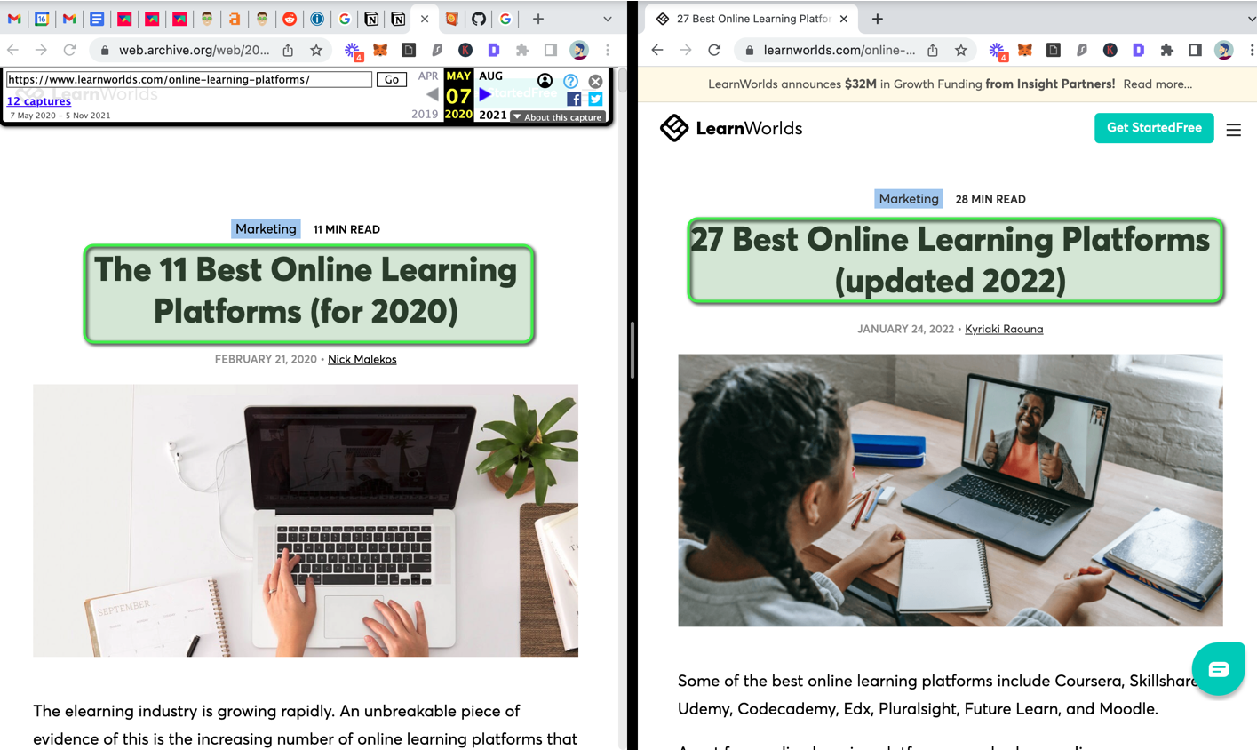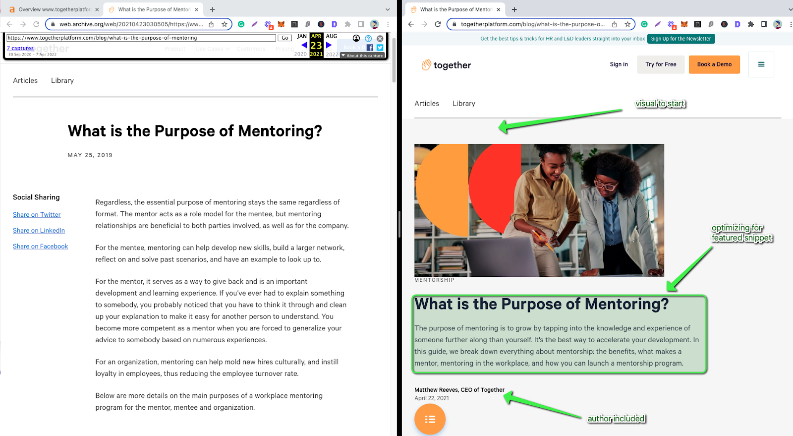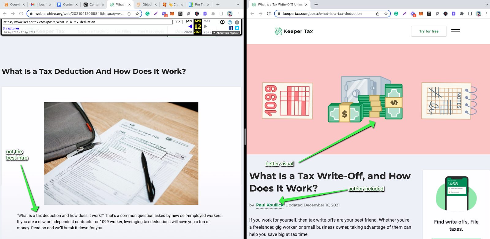 The fascinating thing is that there isn’t much difference between the original version of the post and the updated version in February. I pored over both versions in Wayback Machine but didn’t notice any sweeping changes to the page structure, headings, screenshots, content, or even the author bio.
