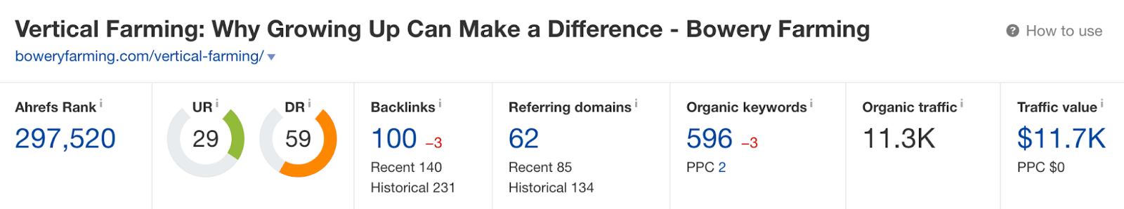 Bowery Farming’s blog on ‘Vertical Farming’ rakes in north of 11,000 monthly organic visitors and ranks for approximately 600 keywords according to Ahrefs.