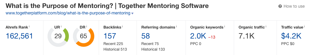 Ryan Carruthers, content marketing specialist at Together, is a longtime Content Harmony user. He relied on the app to bolster the performance of his blog “What is the Purpose of Mentoring?”.