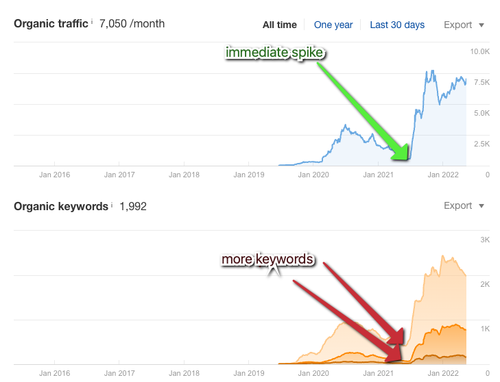 After a refresh in February 2021, however, we can see an immediate traffic spike.