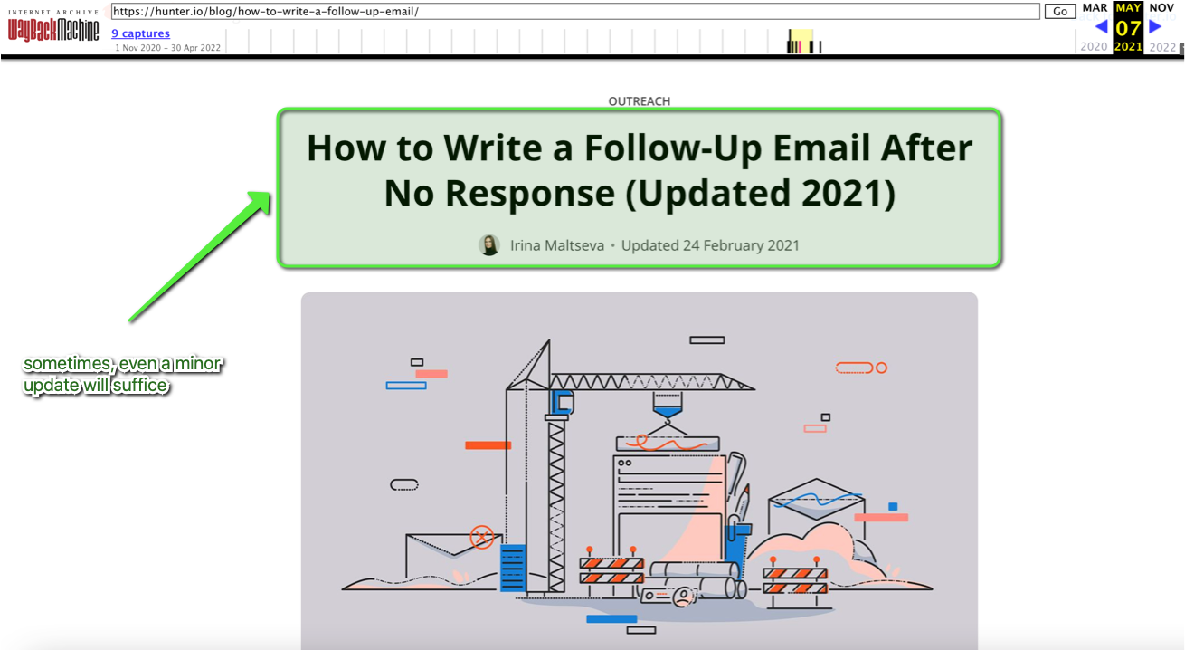 Hunter.io’s “How to Write a Follow-Up Email After No Response” has benefitted from regular, periodic updates since first published in 2020.