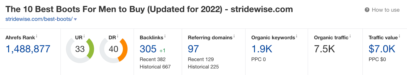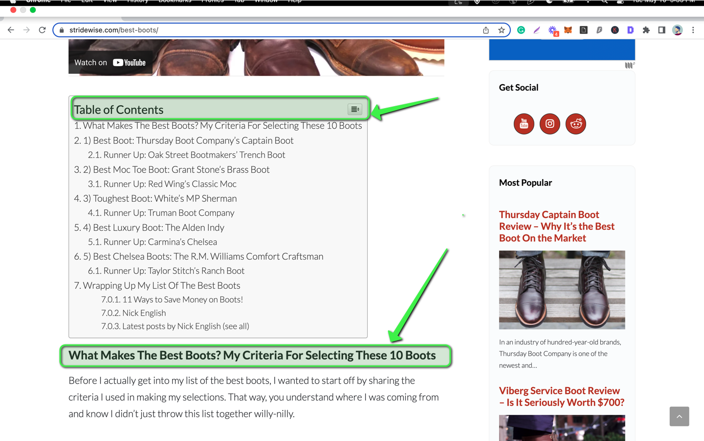 For our first example, let’s take a look at “The 10 Best Boots For Men to Buy” published by Stridewise.
