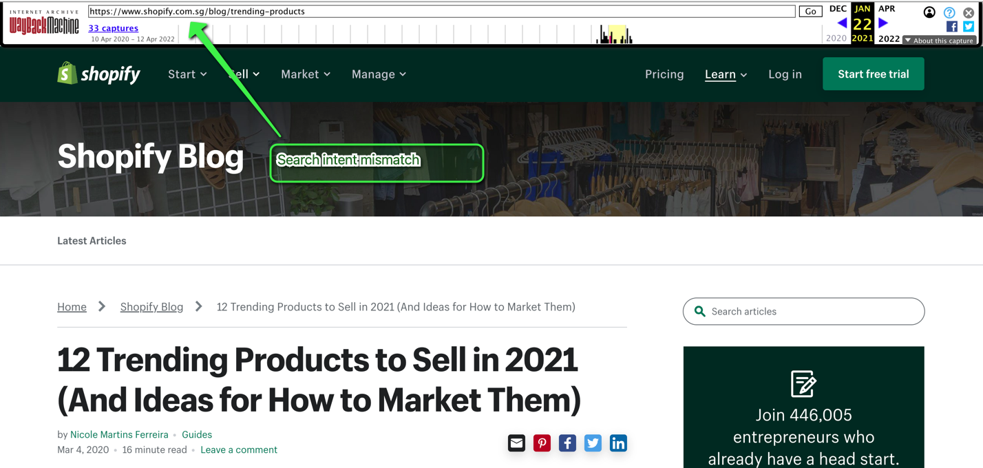 Looking at the previous version of the article through Wayback Machine, we can see that the post doesn’t match search intent as well as it could.