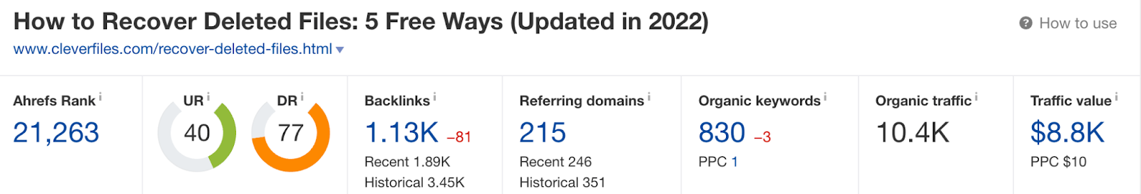 CleverFiles’ guide to recovering deleted files is a traffic juggernaut with over 10,000 monthly organic visitors and nearly 1,200 backlinks.