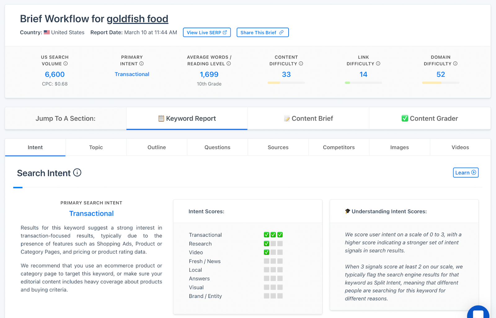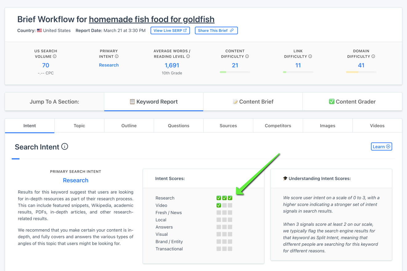 When you’re assembling your content brief, you should also let your writer know what the intended goal of the content is. The search query “how to make your own fish food” implies that folks are ready to make their own food.