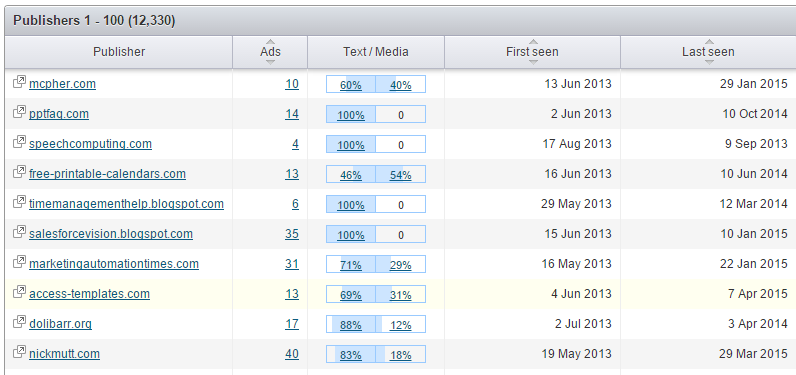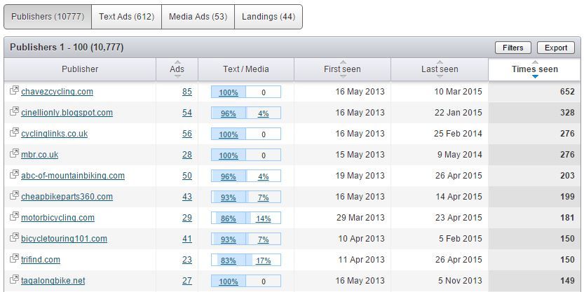 Here’s an example of the report for Specialized.com, a cycling company, and the domains where their display ads show up: