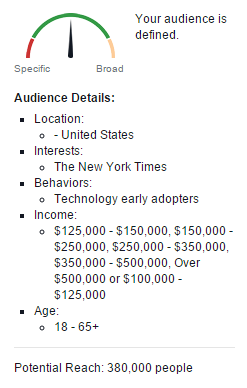 For starters, the graphic on the right shows 380 thousand readers of the New York Times in the U.S. with over $100,000 in annual household income who are likely to be early tech adopters.