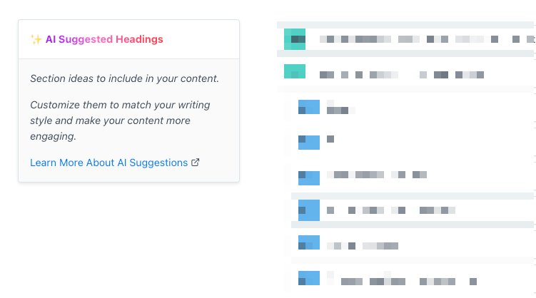 To make sure it's clear to your team when we're using AI-generated suggestions for your content, we'll typically include labels like ⨠AI Suggested Headings in the following example: