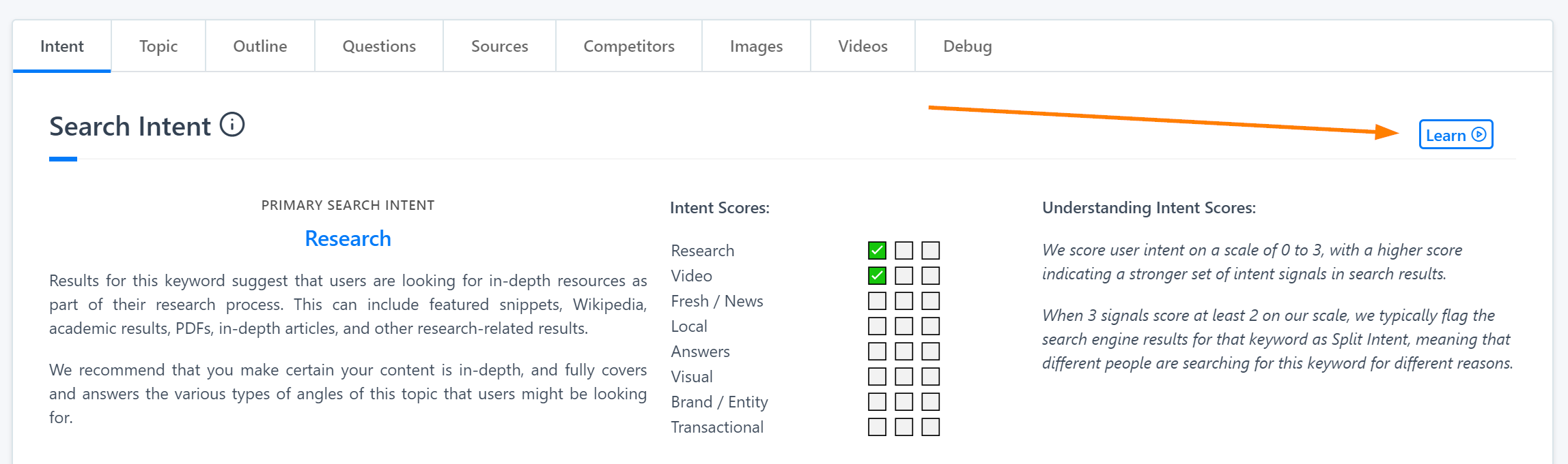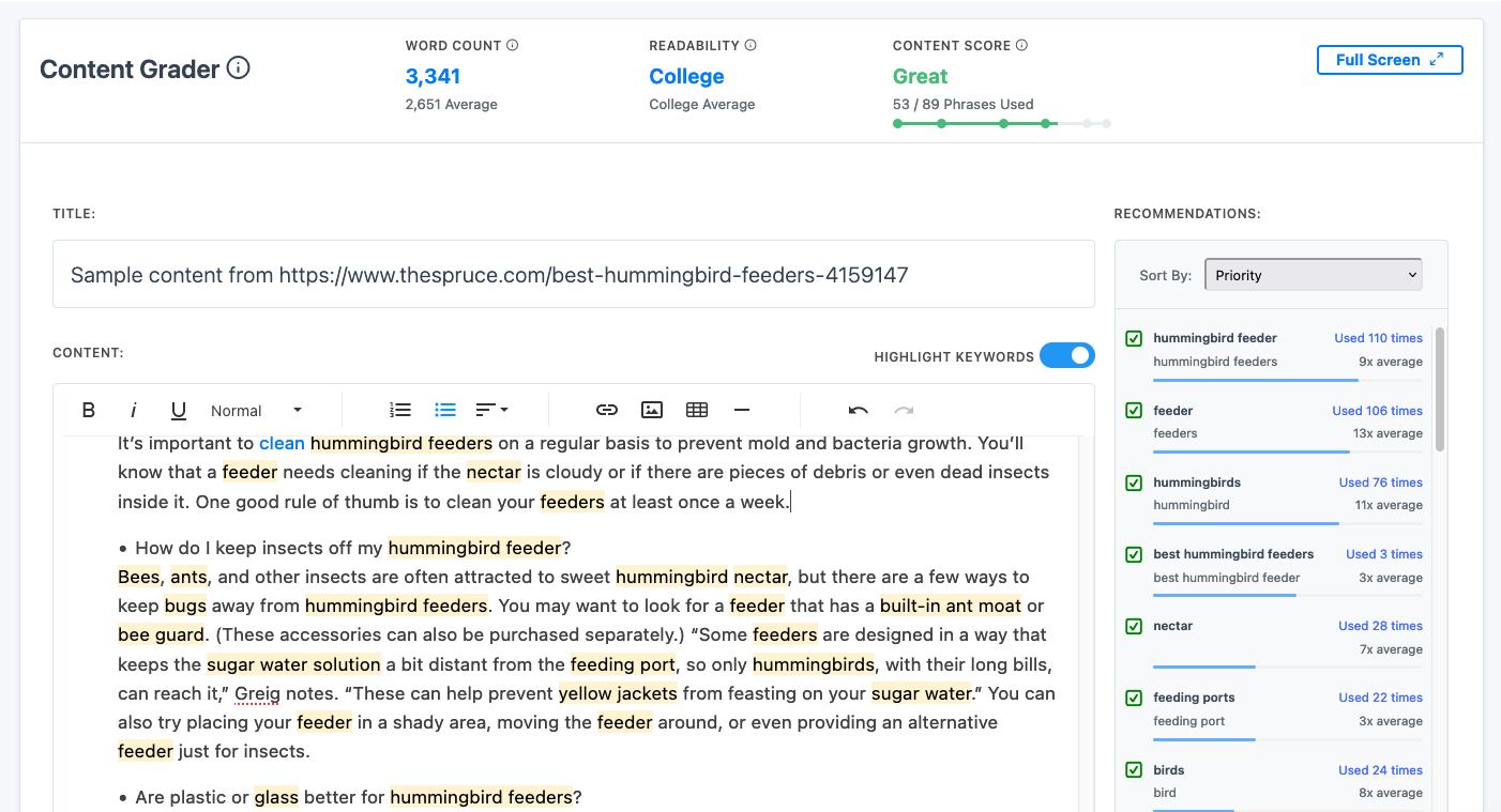 When you have a finished draft, or if you already have a piece of finished content, you can use our content grader to analyze how comprehensive your content is. Our grader will help you identify core sub-topics you haven't used yet in your content: