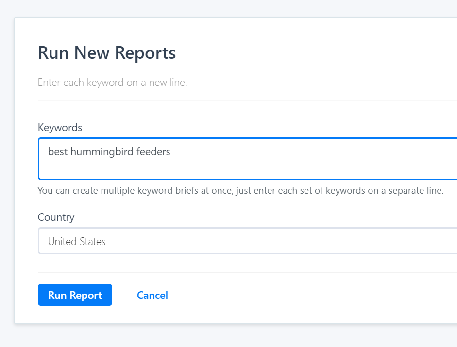 If you want to produce a piece of content to rank for โfish oil benefitsโ, just type that and run a report โ you donโt need to run separate reports for variations like โbenefits of fish oilโ or โfish oil supplement benefitsโ.