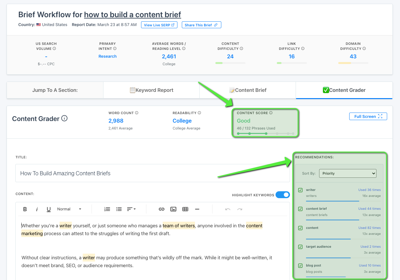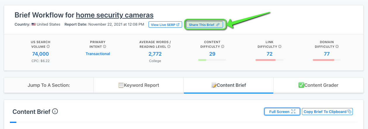 Our Content Briefs help your team quickly assemble the research and highlight the most critical data for writers.