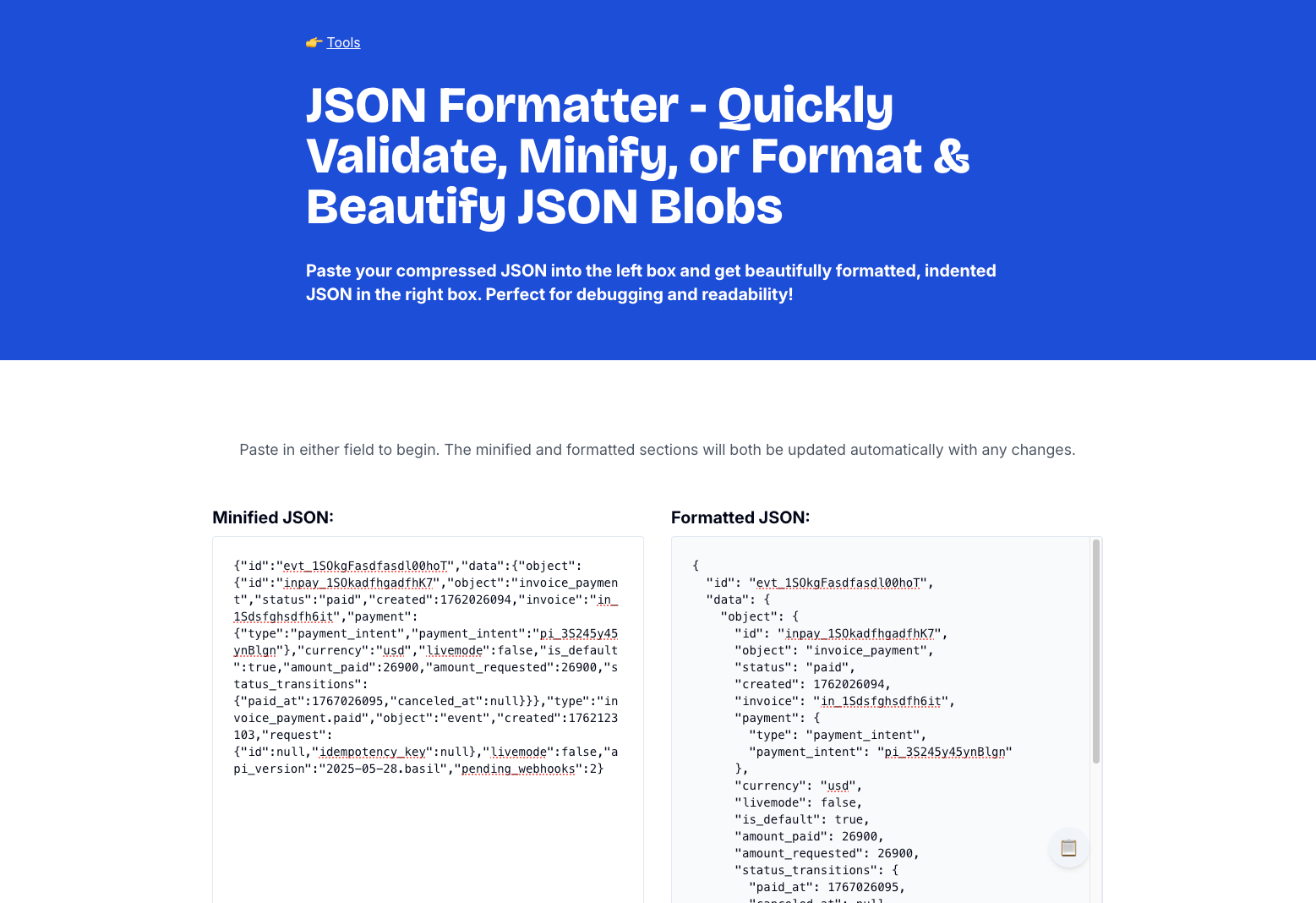 JSON Formatter - Quickly Validate, Minify, or Format & Beautify JSON Blobs