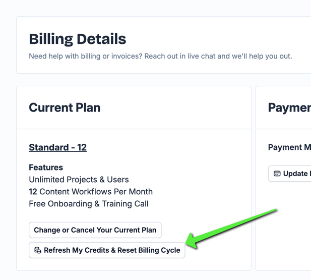 In those cases, what we usually would recommend is just resetting the monthly billing date to today to trigger a new batch of credits.