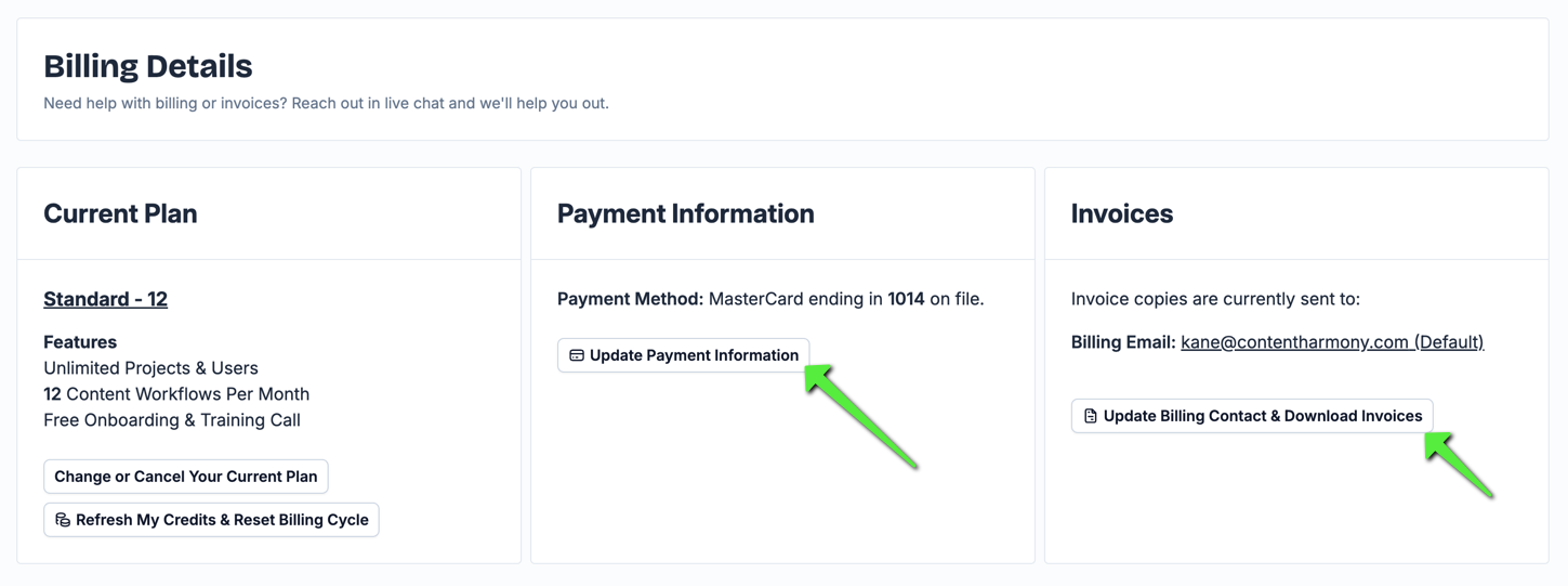 2) Edit Billing Contacts, Download Invoice Copies, & Update Payment Methods